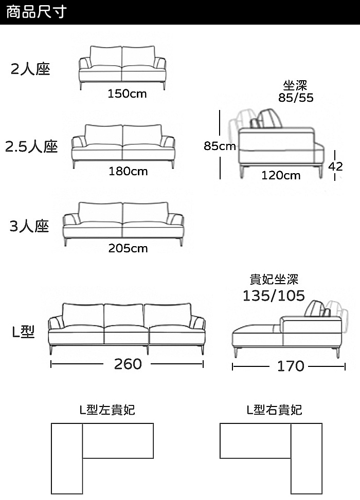 - 框架:柳安木、松木、橡膠皮帶 、PU 泡棉